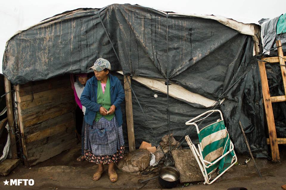 La improvisada carpa cubría a casi un centenar de personas que nos habíamos acercado solidariamente a acompañar a las familias bolivianas que reclaman tierras para vivir.