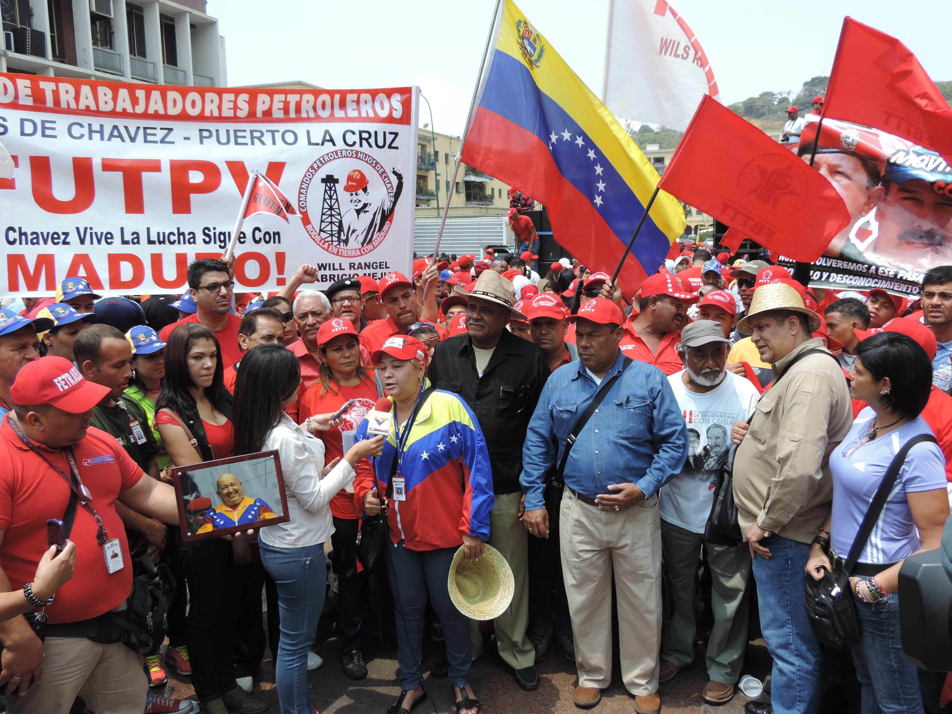 “¡¡¡ Central Socialista y antiimperialista ¡!!” cantaban lxs trabajadores en la una plaza del centro de Caracas, para expresar su apoyo al gobierno revolucionario y garantizar las conquistas que llegaron para el movimiento obrero bajo la revolución.