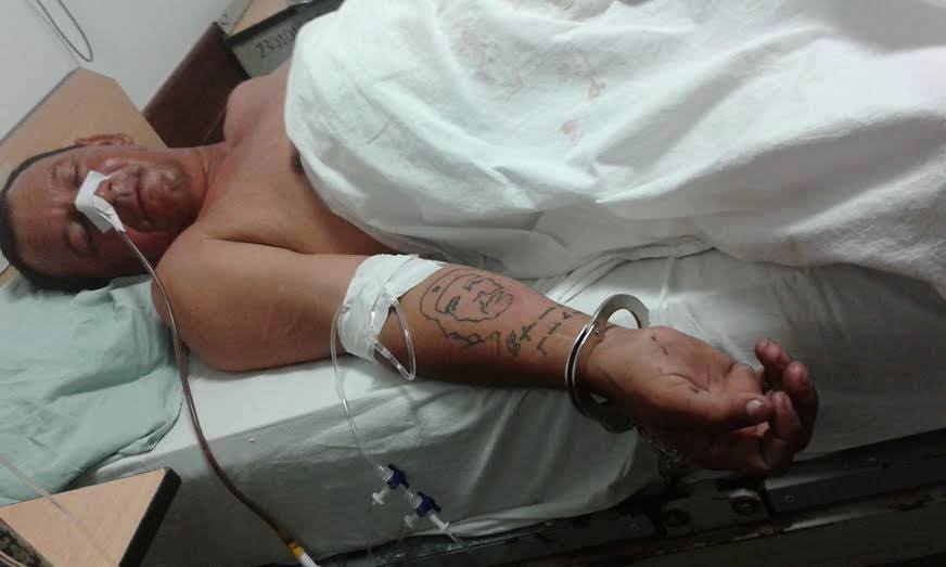 Pero la imagen no concluye, la imagen nos obliga a más. El brazo extendido se encuentra esposado, castigado, detenido para que no se vuelva a levantar. El opresor bien sabe que la única forma de controlarlo y dominarlo es esposándolo, sin importar siquiera que sea en una cama del hospital.