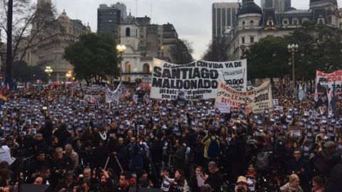 A menos de un mes de la desaparición de Santiago, el régimen no encuentra vías de escape a la presión popular que se expresa masivamente, ya no tan solo de modo creciente en las redes sociales, sino que en las escuelas, las canchas de Futbol, como lo ocurrido en el partido entre Racing y San Lorenzo o en las cientos de movilizaciones que se llevan adelante en el país, acompañadas de miles de paredes que gritan: ¿Dónde está Santiago?