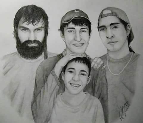 Ilustración: Santiago Maldonado / Desaparecido asesinado por Gendarmería; Luciano Arruga / Detenido, asesinado y desaparecido por la Policía en Buenos Aires; Rafael Nahuel / fusilado por Prefectura / Facundo Ferreira / Fusilado por la policía de Tucumán.