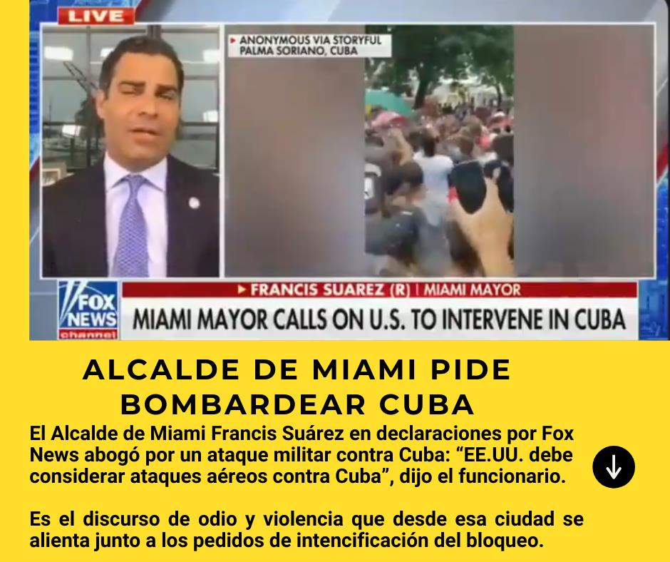 De este modo se comportan estos tipos que desprecian la vida. Hace unas semanas se les caían los edificios de la corrupción y la especulación inmobiliaria y hoy piden bombardear Cuba.Quieren tapar muertes con más muertes.#CubaNoEstaSola#BastadeBloqueo