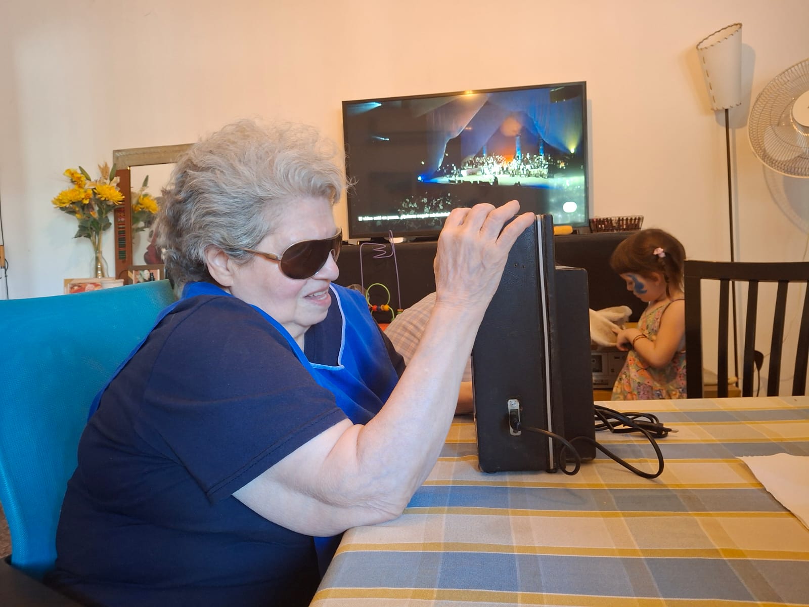 Mi mamá, que nunca fue afecta a retener cosas materiales, pero si una obsesiva de la memoria, alguna vez me había peguntado si aún tenia la radio de mi abuelo. El pasado día de la madre, le entregamos la radio andando y luego de tocarla (ya que ella quedo ciega hace muchísimos años), la reconoció y su expresión nos conmovió a todos. Dijo muy cariñosamente, ¡Papá!